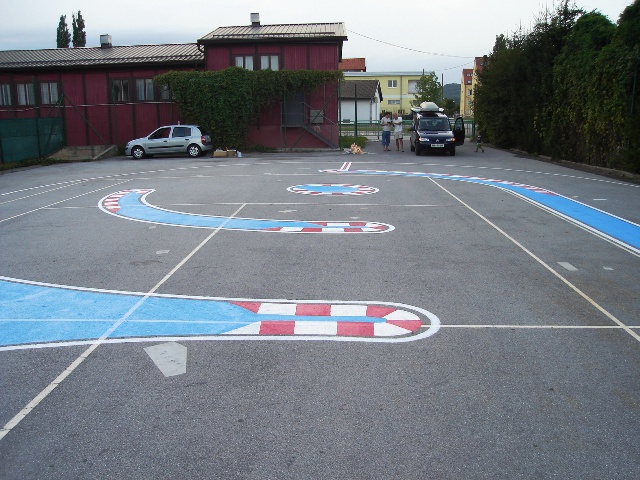 Proga je načeloma gotova, potrebno je še postaviti ovire na modri podlagi (modre pobarvane ''deske''). Kot vidite je proga permanentna, tudi elektrika je vedno dostopna. Proga pa je izključno za elektro R/C, ki ne povzročajo hrupa. Zraven so namreč tenis igrišča, v bližini je tudi trgovina, hotel, bencinska črpalka, restavracija ... tako da vse potrebno je na dosegu roke. Prva dirka (otvoritvena) je planirana nekje v oktobru in bo prijateljskega značaja. Prodrobni podatki bodo seveda objavljeni na forumu.
