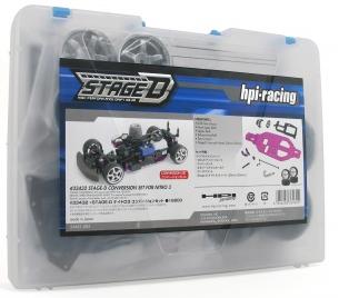 Conversion notes: The Stage-D Conversion Set is an upgrade for the HPI Nitro RS4 3 Evo Kit. Standard Nitro RS4 3 cars can be upgraded, #86038 2 speed transmission must be used. Hump receiver battery pack required, not included in the kit.