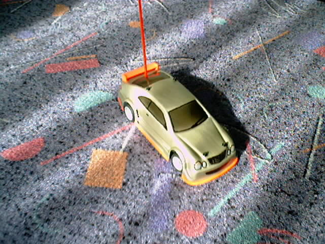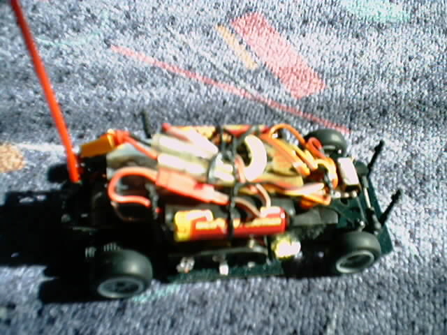par slikic za zacetek (malo slabse kvalitete:), aja pa servo je standardne velikosti!! komaj sem ga noter dobil:) drugace pa 5AA celic (tri spodaj, pa se po ena na vsaki strani, ker je servo predolgi in ni slo 5 celic spodaj:), motorcek in vse ostalo pa je se original. dobil sem belo karoserijo:(
