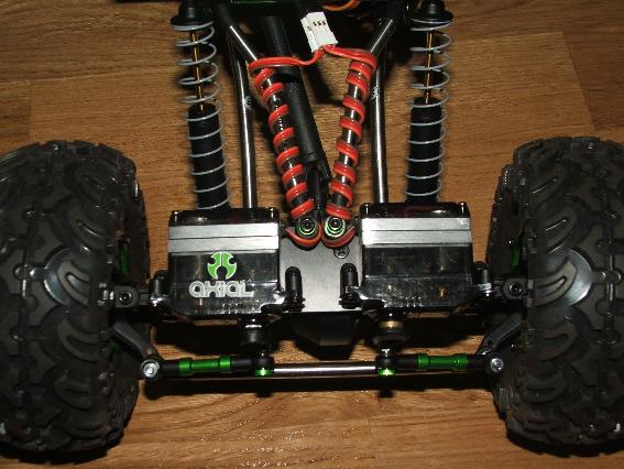 Ko sneg skopni, ob kakem vremenu se lahko dobimo na skalah za šolo v goricah. Boš lahko probal. Sicer pa imam drugo zaporo diferenciala S+Z (križ), polosi S+Z, ful mehke vzmeti S in ful trde Z, tamočna servota s kovinsko notranjostjo, od Novaka ECS, trackpuler, 595g, linki kot so, zadaj malo daljši, pa še MOAB M3 4x. Ampak med vožnjo na oviro (5-10 cm) s PL kolesom, se vodoravno dvigne še PD, naravnost v hrib pa ne, tako da je treba še to uredit. Bo še čas.