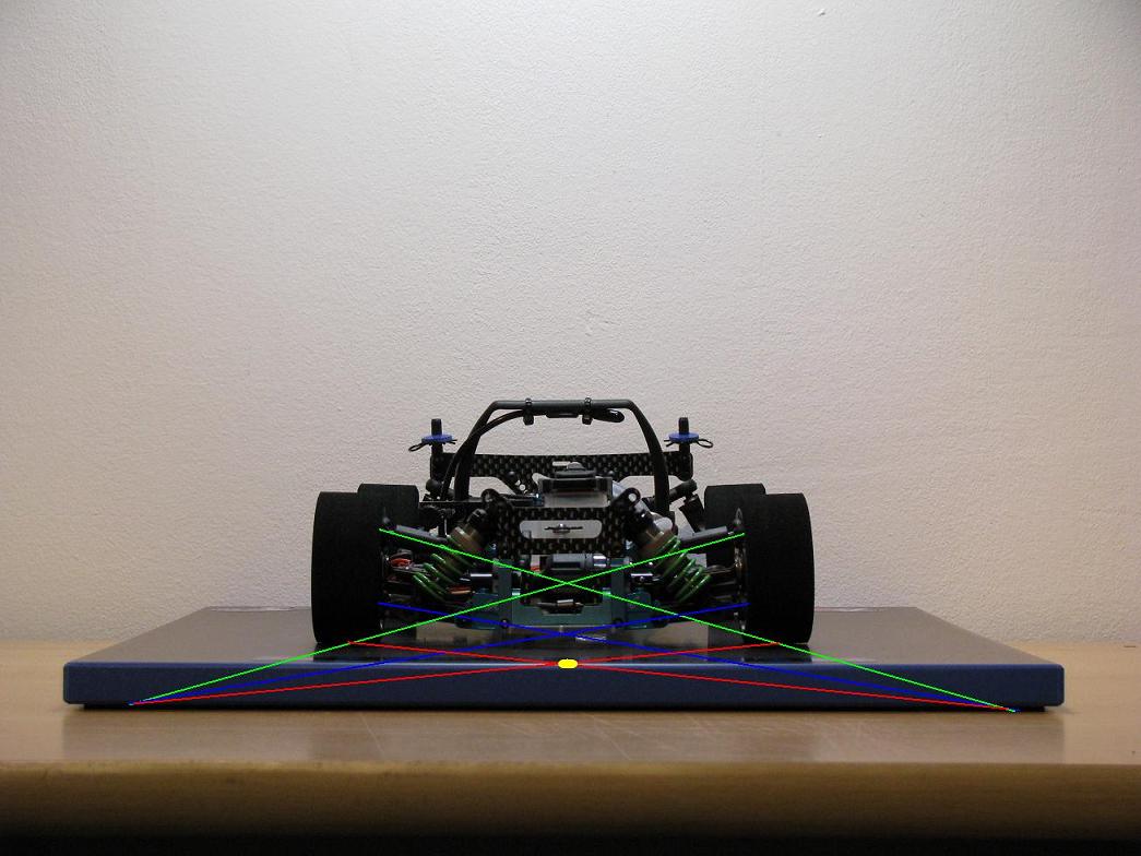-Zadaj bolj navznoter: avto nekoliko bolje požira udarce in ga lahko napravi nekoliko hitrejšega v ovinkih, to je lahko dobra nastavitev za grbinaste proge z malo oprijema a pri tem izgubimo nekoliko stabilnosti.