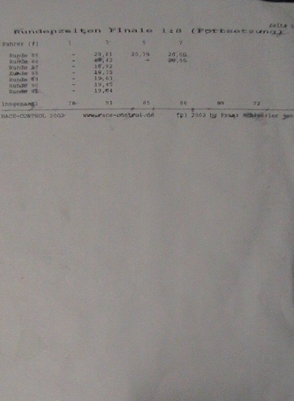 Kvalifikacije so se odvijale v suhem, polfinala in finala pa v dežju. Po dežju smo vozili le redki oz. pogumni, od tod tudi tako dobri rezultati.